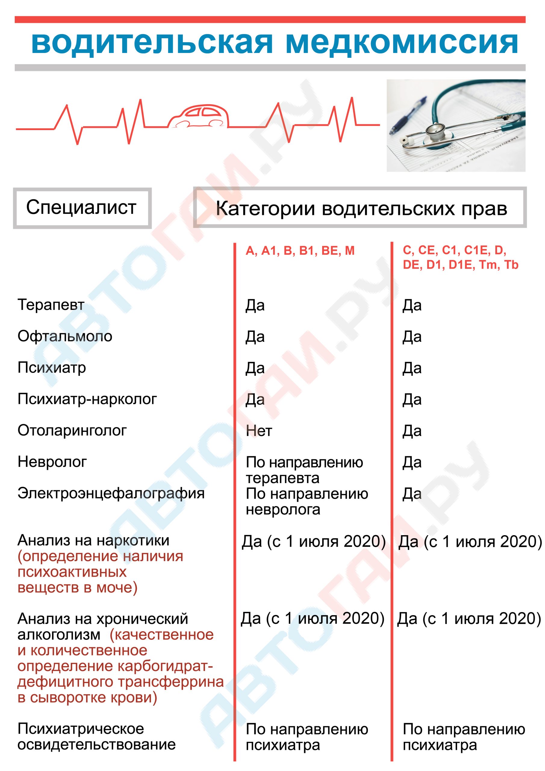 Если водителю изначально не нужно сдавать дополнительных анализов, то и перечисленные выше признаки у него искать не будут.