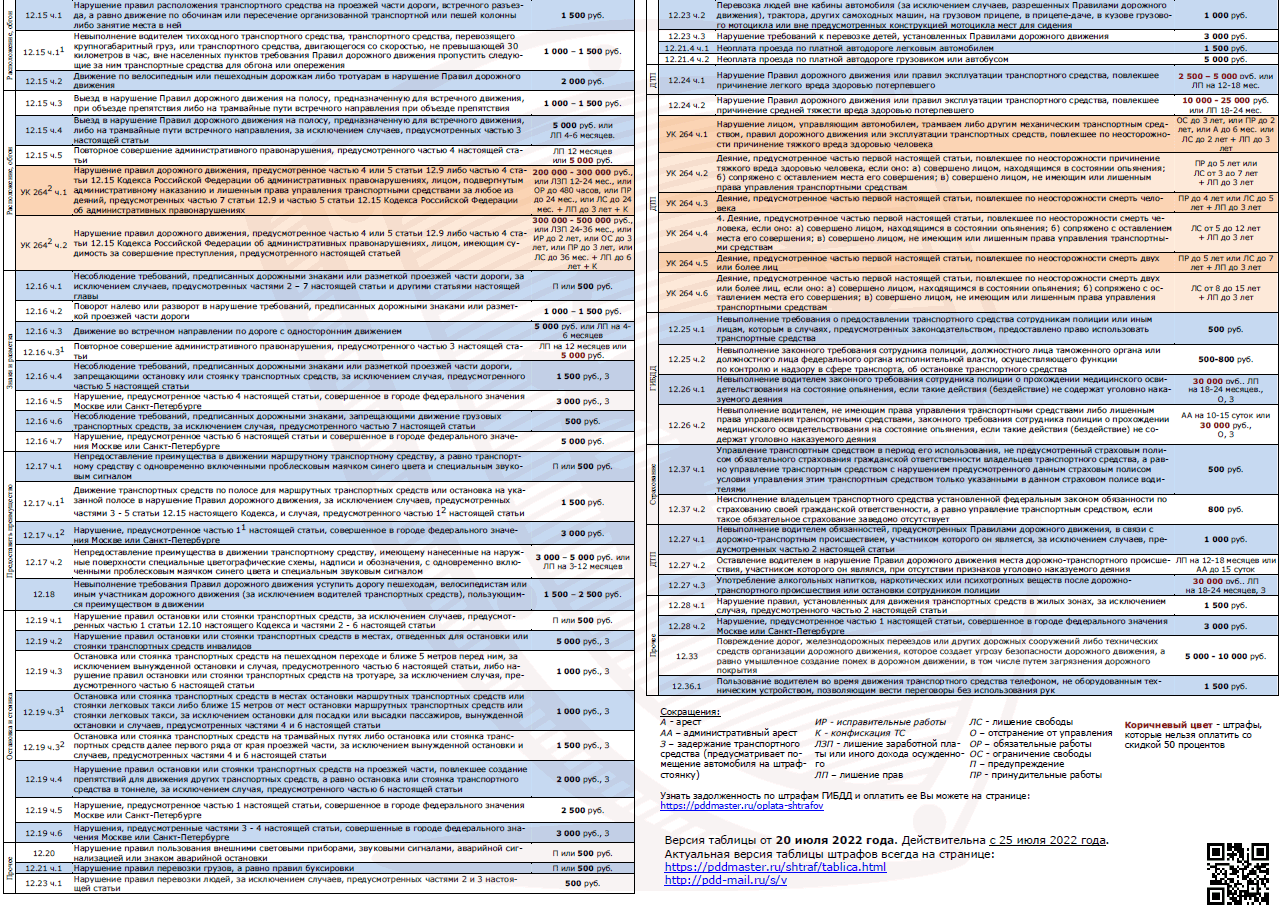 🚗 Виды правонарушений, размеры штрафов. Таблица